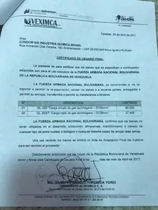 ESTAS SON LAS FACTURAS ORIGINALES, DE LA COMPRA DEL GOBIERNO VENEZOLANO AL NOVÍSIMO GOBIERNO BRASILEÑO DEL SR. Michel Temer (Brasil), POR … 23 TONELADAS DE BOMBAS LACRIMOGENAS PARA REPRIMIR AL PUEBLO VENEZOLANO …