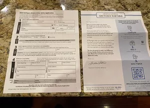 Las leyes del estado de Michigan prohíben enviar materiales de campaña junto con las solicitudes de votación.