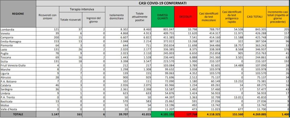 En las últimas 24 horas en Italia ha habido 12 muertes por Covid-19 y 1.400 nuevas infecciones, Los cuidados intensivos y las hospitalizaciones ordinarias siguen disminuyendo. Tasa de positividad del 0,7%.